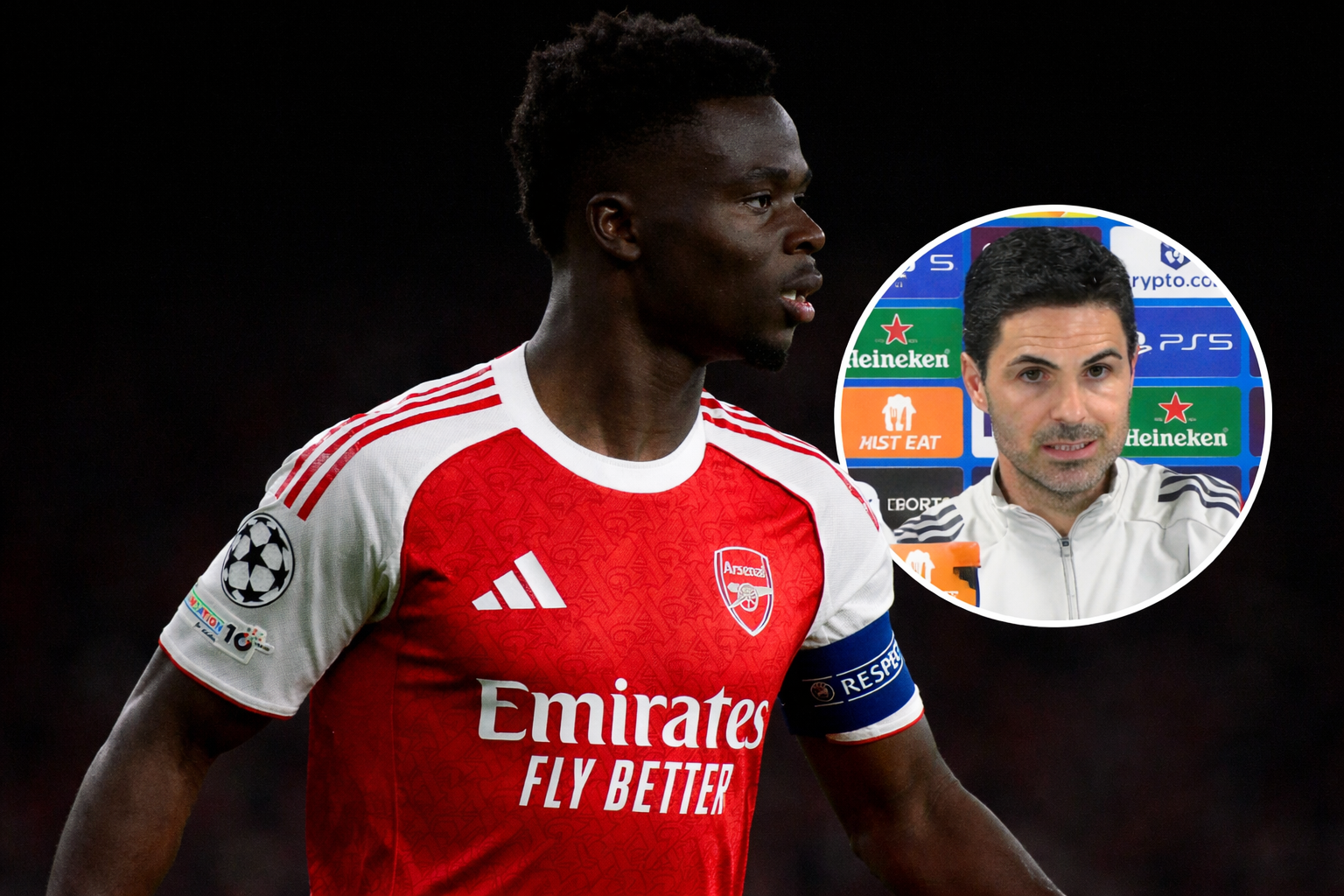 Inkasta oo Saka uu ku biiray xulka England bishii hore, haddana wuxuu ka baxay xerada kaddib hal maalin oo keliya, wuxuuna ka maqnaa saddex kulan oo Arsenal ah tan iyo markaas. Arteta ayaa hadda xaqiijiyay in kooxdiisu mar kale ka maqnaan doonto ciyaaryahanka 24-jirka ah kulanka Axadda ee Etihad kula ciyaarayan city.